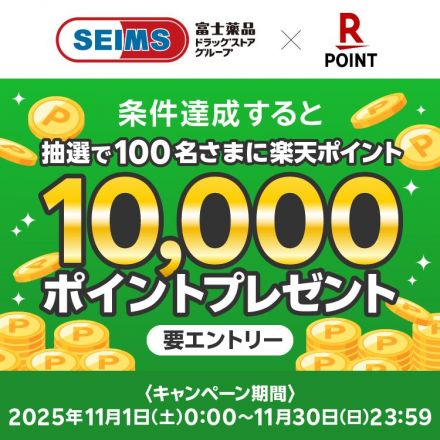 楽天ポイント最大10,000ポイント当たる… 富士薬品ドラッグストアグループの店舗で、楽天…