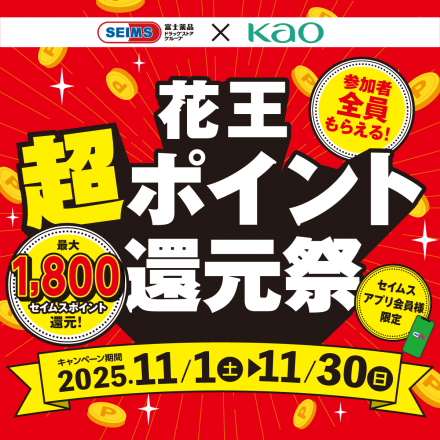 花王超ポイント還元祭 富士薬品ドラッグストアグループ店舗で、花王対…