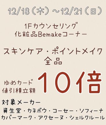 12月18日(木)~12月21日(日)の4日間はゆめカード値引積立額10倍!!