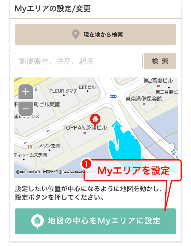 ご自宅や勤務先など、よくお店に行くエリアを「Myエリア」として設定してください。