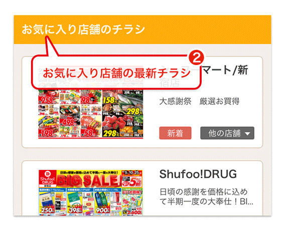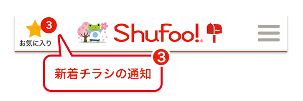 お気に入り登録した店舗の新着チラシは、バッジ表示で通知されます。